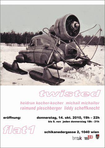 ... zumal dies bestenfalls in der ästhetischen Erfahrung uneindeutiger, inkohärenter, instabiler und unplausibler visueller Phänomene mündet. Begründet eine schlichte Provokation gegen allzu eingefahrene Rezeptionsgewohnheiten, die biedere "Initiierung von gedanklichen Reflexionsprozessen" (Nina Zschocke: Der irritierte Blick. Kunstrezeption und Aufmerksamkeit, München, Wilhelm Fink, 2006), tatsächlich den selbstpostulierten gesellschaftliche Sonderstatus mancher Kunstschaffender? Auch die KünstlerInnen in der 13. Ausstellung von flat1, "twisted" (engl: verdreht, pervers, krumm) begeben sich in dieses kunsttheoretische Spannungsfeld, indem sie in ihren Arbeiten mittels unscheinbarer Veränderungen von alltäglichen Situationen an den Wahrnehmungsgewohnheiten der Betrachter rütteln. Das phänomenale Ineinandergreifen von Werk und Rezipient kann auch als eine Provokation gegen pervertierte gesellschaftliche Lebensgewohnheiten gesehen werden. Auf diese Weise bekommt der scheinbare künstlerische Selbstzweck plötzlich auch gesellschaftspolitische Relevanz. Mit Gefühl für hintergründigen Witz bahnen die KünstlerInnen nicht nur einen Weg aus einer vermeintlichen Ausweglosigkeit sondern tragen mit ihrer Zivilisationskritik auch zu einer Selbstpositionierung künstlerischer Tätigkeit als Widerpart zunehmend rational-technokratischer menschlicher Beziehungsdeterminanten bei.